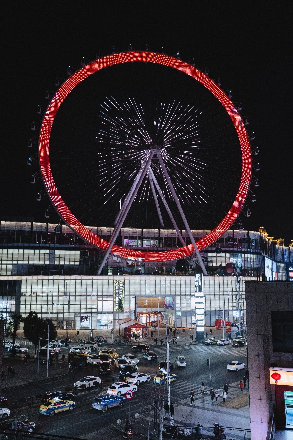 活动自启动以来,便迎来了络绎不绝的返乡客人。他们的脸上洋溢着归乡的喜悦,有的手持车票,有的紧握机票,每个人的心中都满载着对家乡的思念与期待。顾客刘女士激动地说:“在外工作的一年里,总听家乡人提及摩天轮的壮丽,心中一直怀揣着回乡体验的愿望;在高铁上便收到了此次活动信息,一出高铁站就径直来到永川里乘坐体验。”顾客们乘坐摩天轮之后,内心感慨不已。他们纷纷表示,家乡这一年的发展变化如此之大,在摩天轮高空可以一览无遗地欣赏到家乡崭新的面貌:创新的会展中心、智能的科技片场、先进现代化的城市交通……这一切都让他们感到自豪和激动,也非常感谢永川里新春的福利活动。